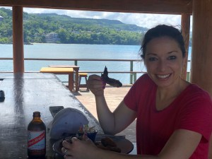 Eating Jerk Chicken on James Bond Beach