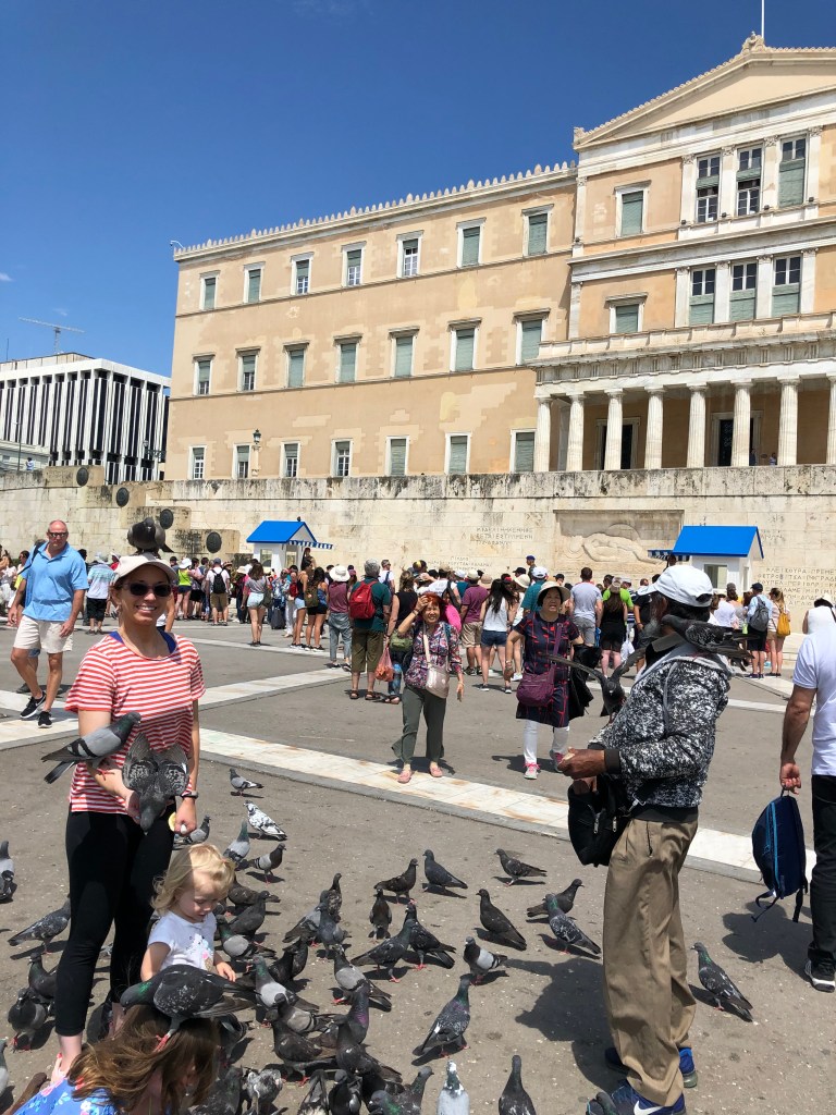 More modern by Greek standards (e.g. 19th century neoclassical architecture, built in the 1843), this once housed the Greek royal family, and since 1929 has served as the country’s house of Parliament. However, the real highlights are the action in front, including the traditionally dressed guards protecting the Tomb of the Unknown Soldier, as well as feeding the pigeons that inundate the square in front.